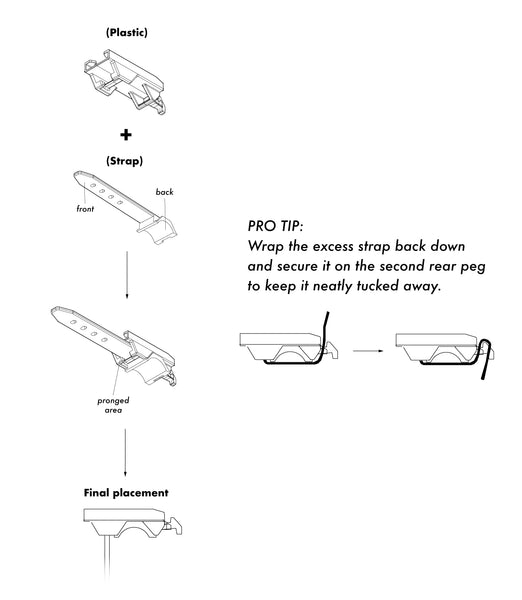 In every package comes three components; 1) glass-filled nylon plastic component, 2) Curved rubber strap and 3) Angled rubber strap.
